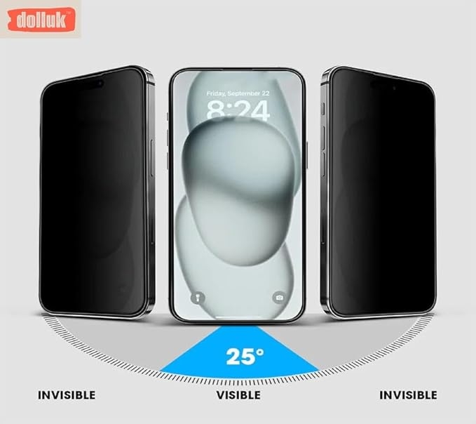 dolluk iPhone Screen Protector, Anti-Spy Tempered Glass Screen Protector Micro-curved Edges, Case Friendly, Anti Spy (iPhone 16 Pro)